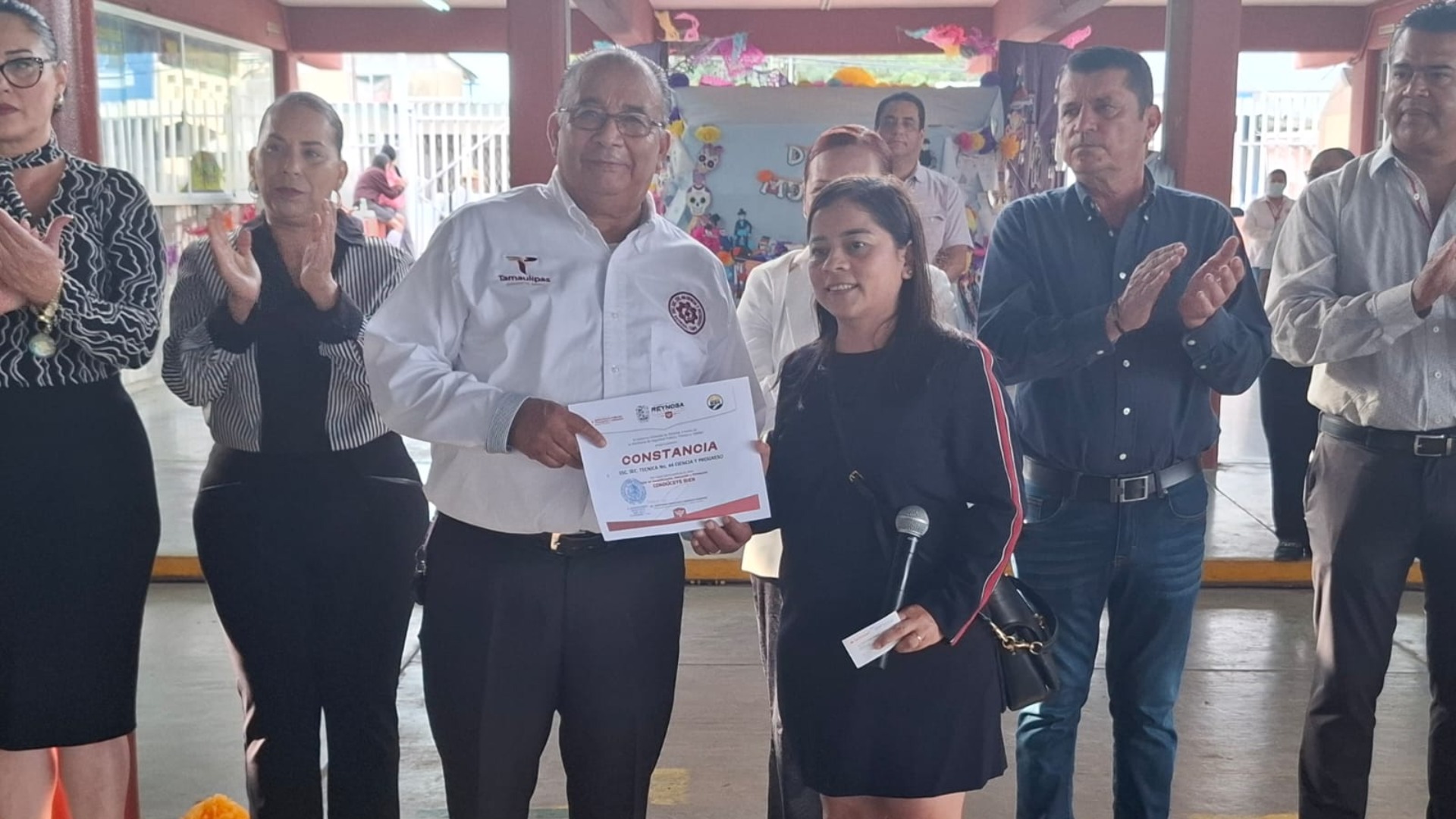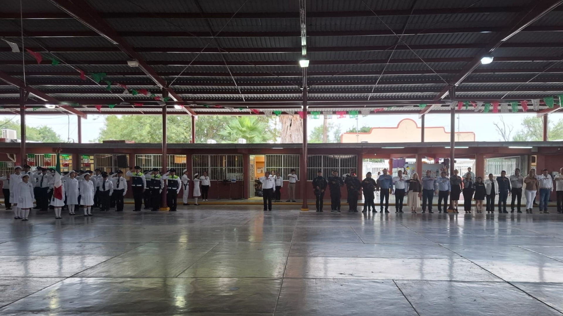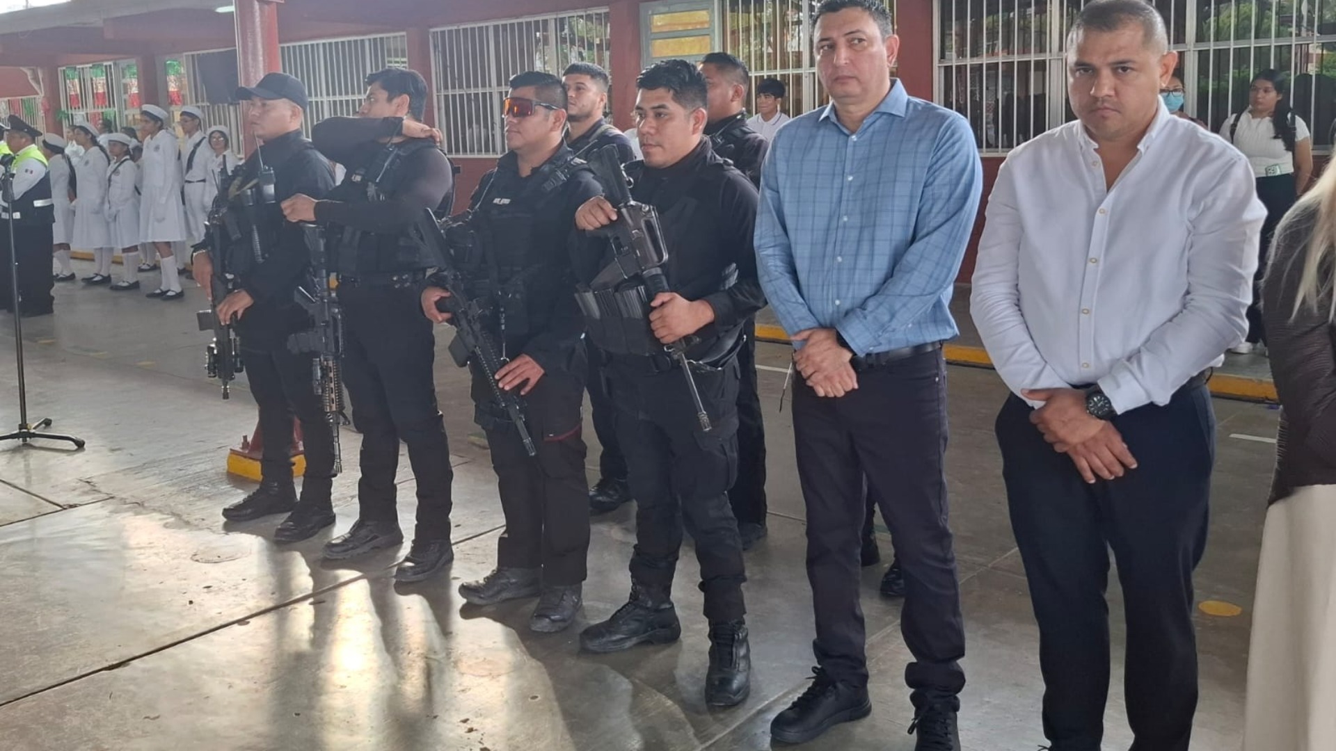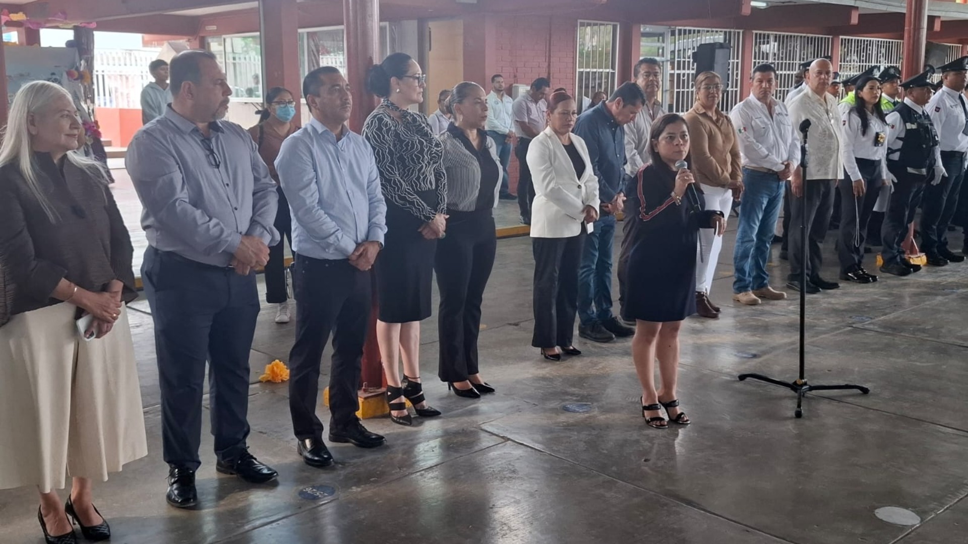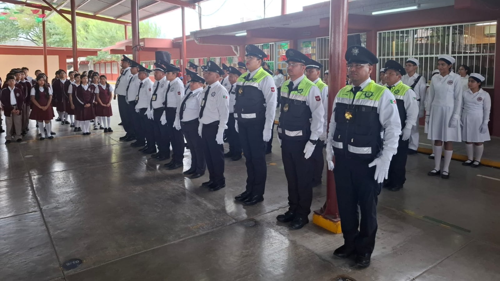 Ceremonia de honores a la bandera y pase de lista a los agentes de vialidad de la Secretaría de Seguridad Pública, con el acompañamiento de regidores del R. Ayuntamiento de Reynosa, promoviendo las campañas Mi amigo el policía, y Condúcete bien.
