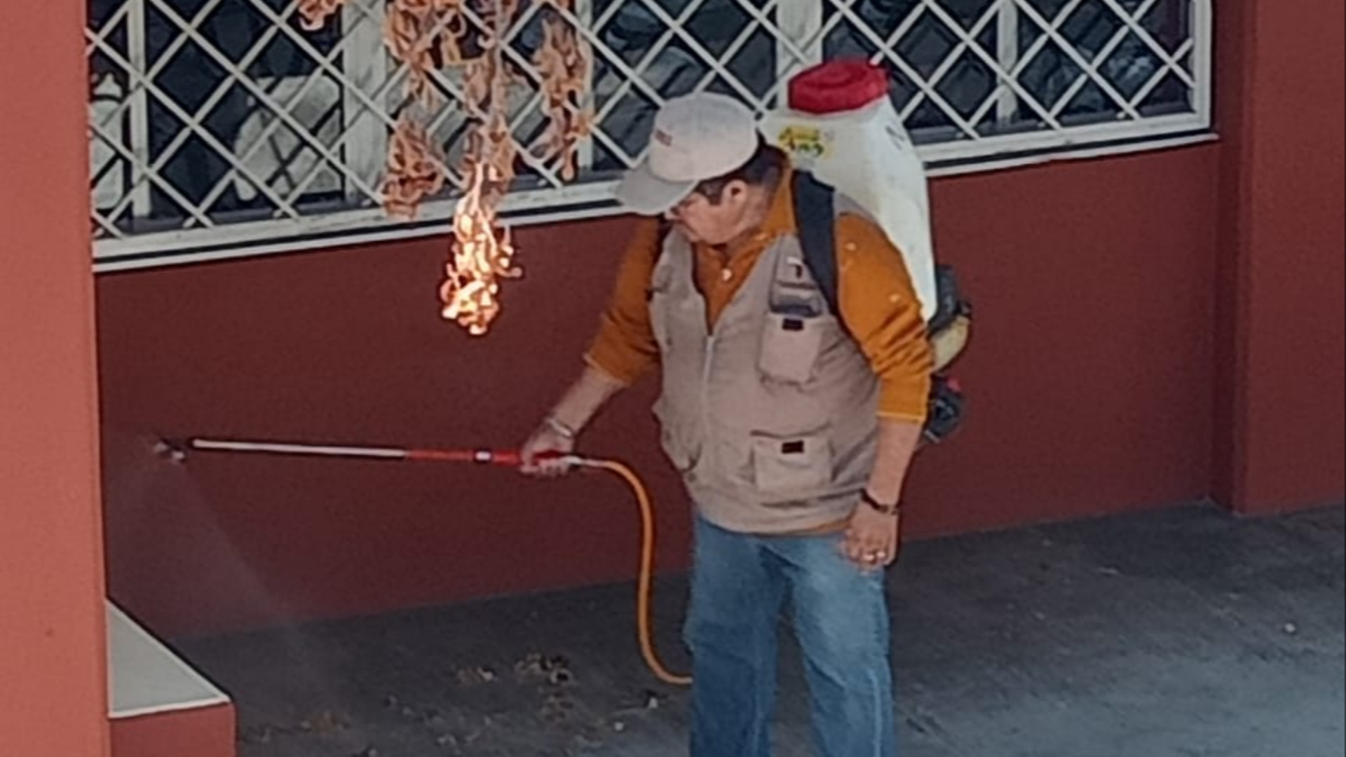 Campaña contra el dengue. Una acción implementada por la escuela es la de fumigar antes de iniciar el ciclo escolar para prevenir problemas de salud por causa de los mosquitos transmisores del dengue.